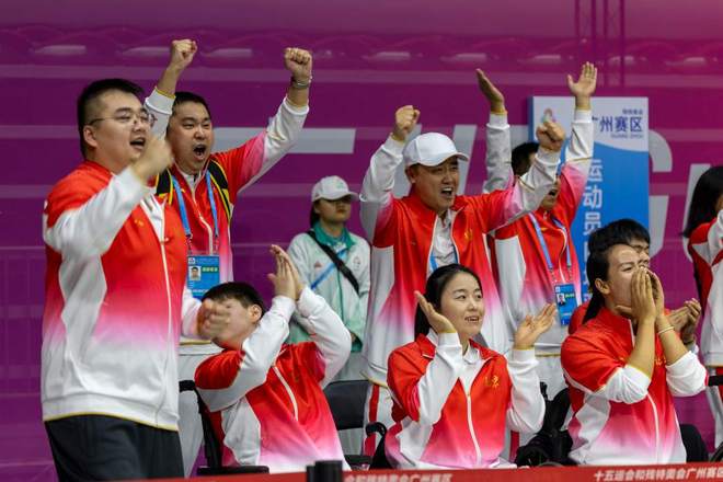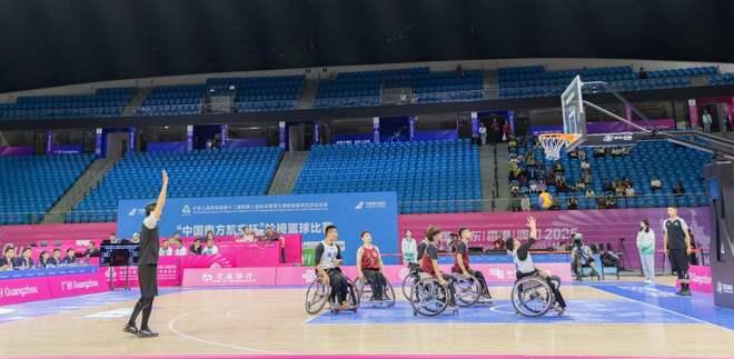 12月8日,全国第十二届残疾人运动会轮椅篮球项目三人制比赛在广州体育馆收官,这是该项目第一次出现在全国残特奥会的赛场上。