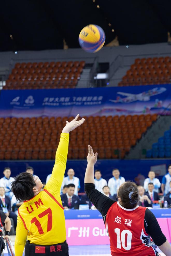 三人制轮椅篮球比赛时间只有10分钟,两队攻防转化快。运动员在赛场上顽强拼搏,展现了精湛的技术和坚韧进取的精神,最终辽宁队、广东一团分别击败各自对手,拿下了历史性的金牌。