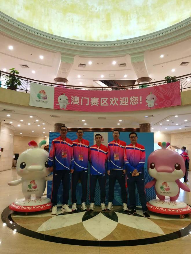 三人与球队主教练、助理教练合影(左二为杨易轩,中间为王麒淞、右二为张懿赵杰)