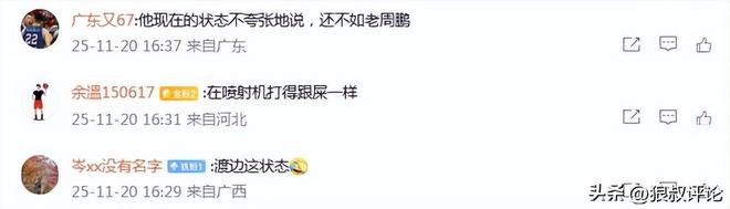 有球迷质疑渡边雄太现在的状态,还不如老周鹏。