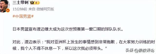北京时间11月20日,日本男篮宣布渡边雄太成为这次世预赛第一窗口期的球队队长。
