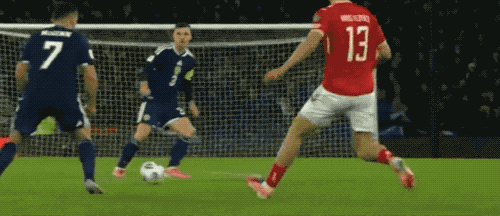 进入伤停补时阶段,场上比分依旧是2-2,留给苏格兰的时间不多了,关键时刻,世界波又来了。